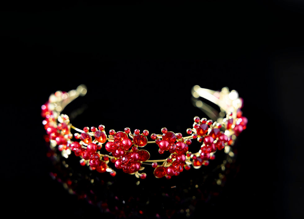 Mahan Rot Gold Set Ohrringe Halskette und Diadem